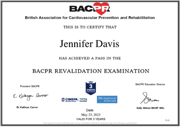 -    Level 4 BACPR Exercise Instructor for Cardiac Rehab and Prevention - Revalidation (2023)